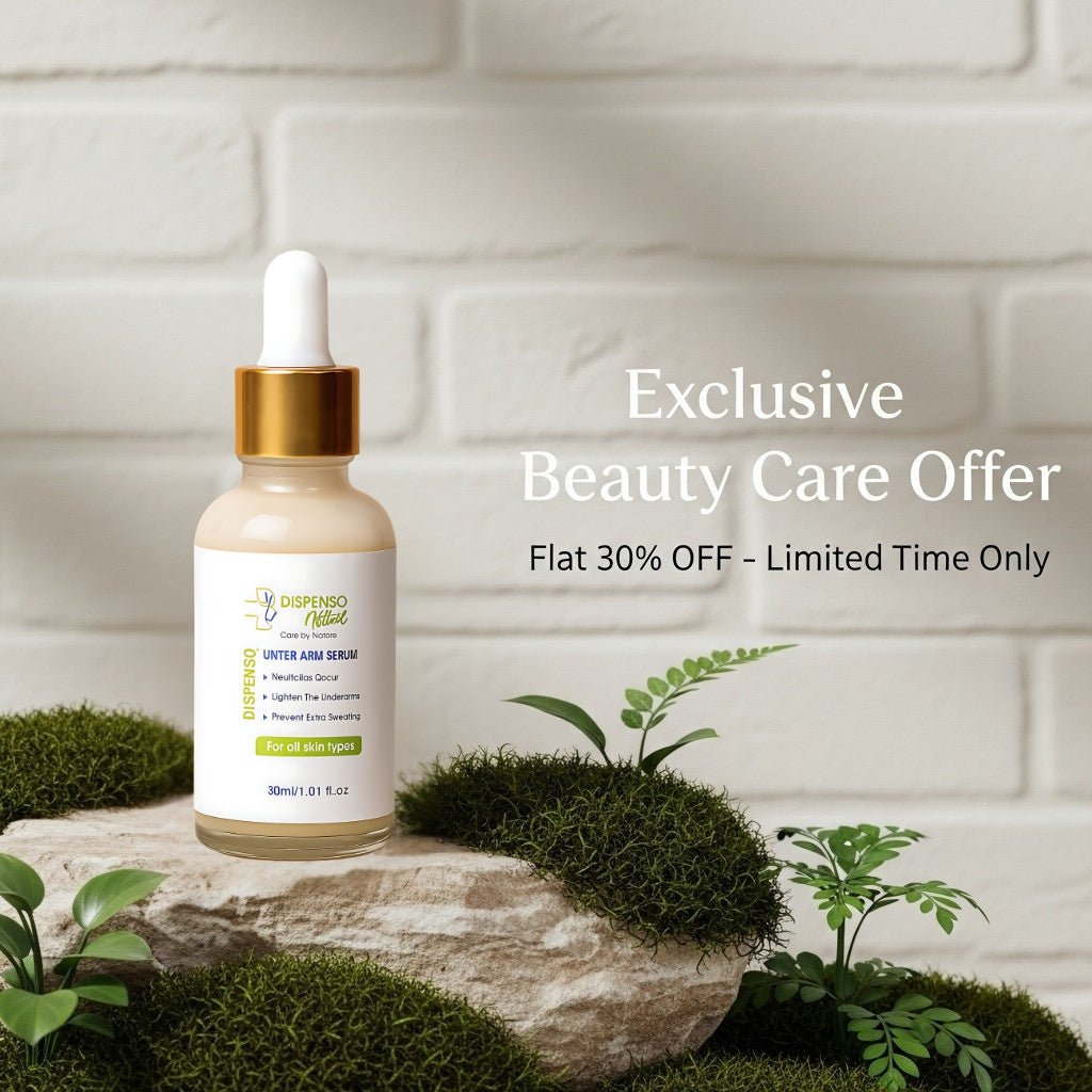 No more dark patches, uneven skin tone, or odor worries — Dispenso Underarm Serum is your natural solution for smooth, bright, and fresh underarms.